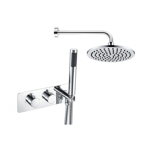 Luna Shower Pack One - Two Outlet Twin Shower Valve w/Handset & ABS Overhead - Chrome - Ebzone