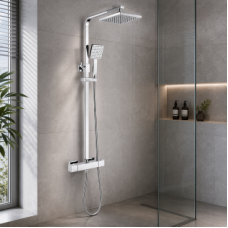 The set includes a large overhead rainfall shower for a relaxing, spa-like experience, along with a convenient handheld shower for added flexibility. An adjustable riser rail allows the handset height to be easily positioned to suit different users. Finished in polished chrome, the Argo shower system combines contemporary design with everyday functionality, making it an ideal choice for stylish and reliable showering